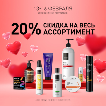 С 13 по 16 февраля скидка 20% на весь ассортимент бренда Epica Professional!